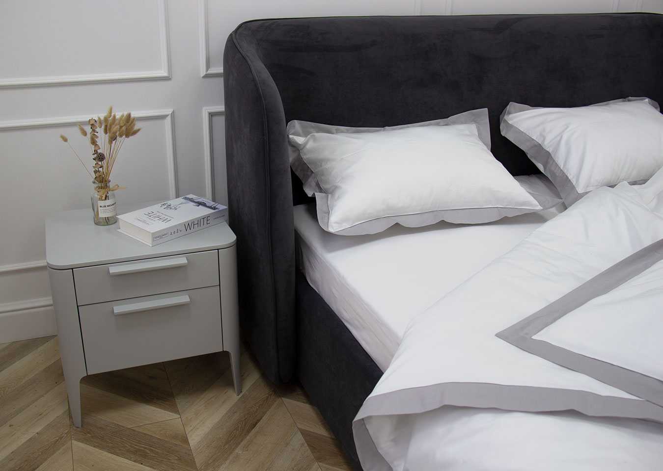Комплект постельного белья 2-спальный «Оксфорд» (белый/серый, сатин)