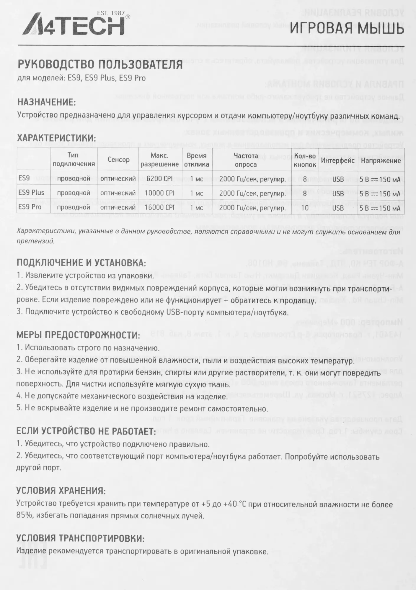 • Особенности Игровой сенсор PMW 3327, скорость срабатывания 1 мсек
