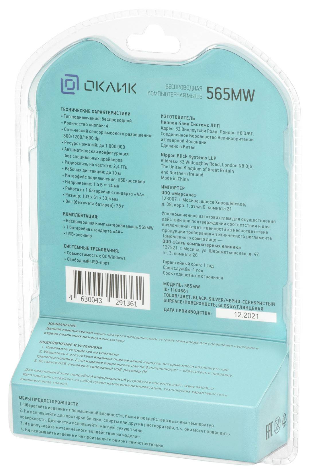 Мышь Оклик 565MW glossy, черный/серебристый (1103661)