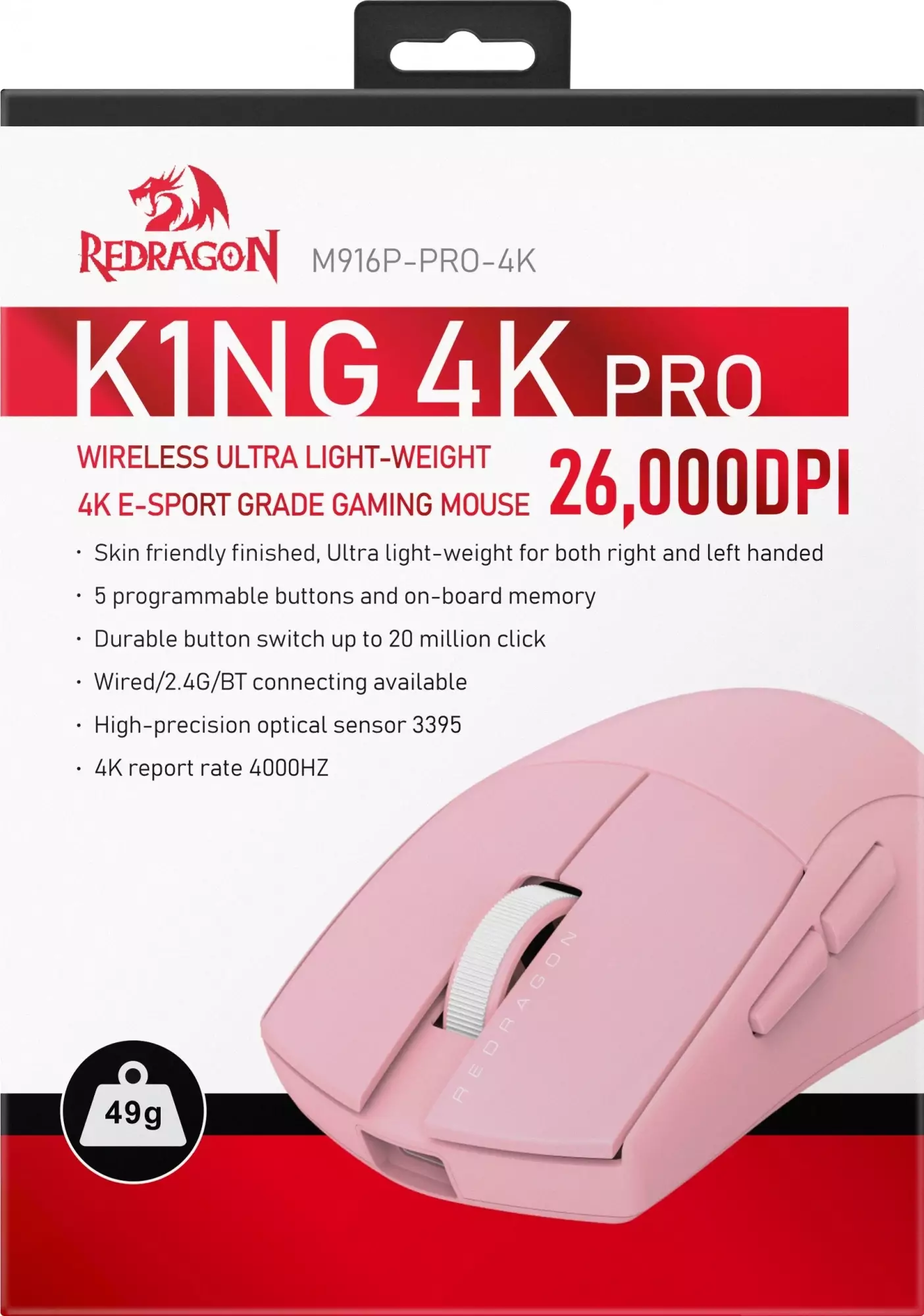 Мышь Redragon K1ng 4K Pro, розовый (72213)