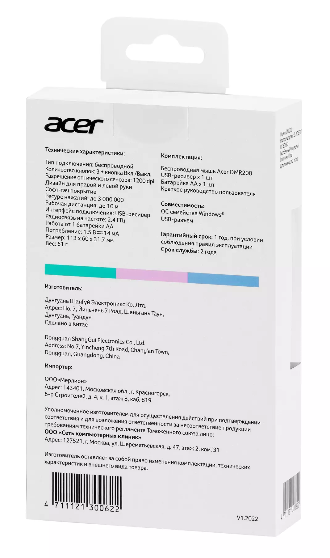Мышь Acer OMR200, зеленый/фиолетовый (zl.mceee.021)