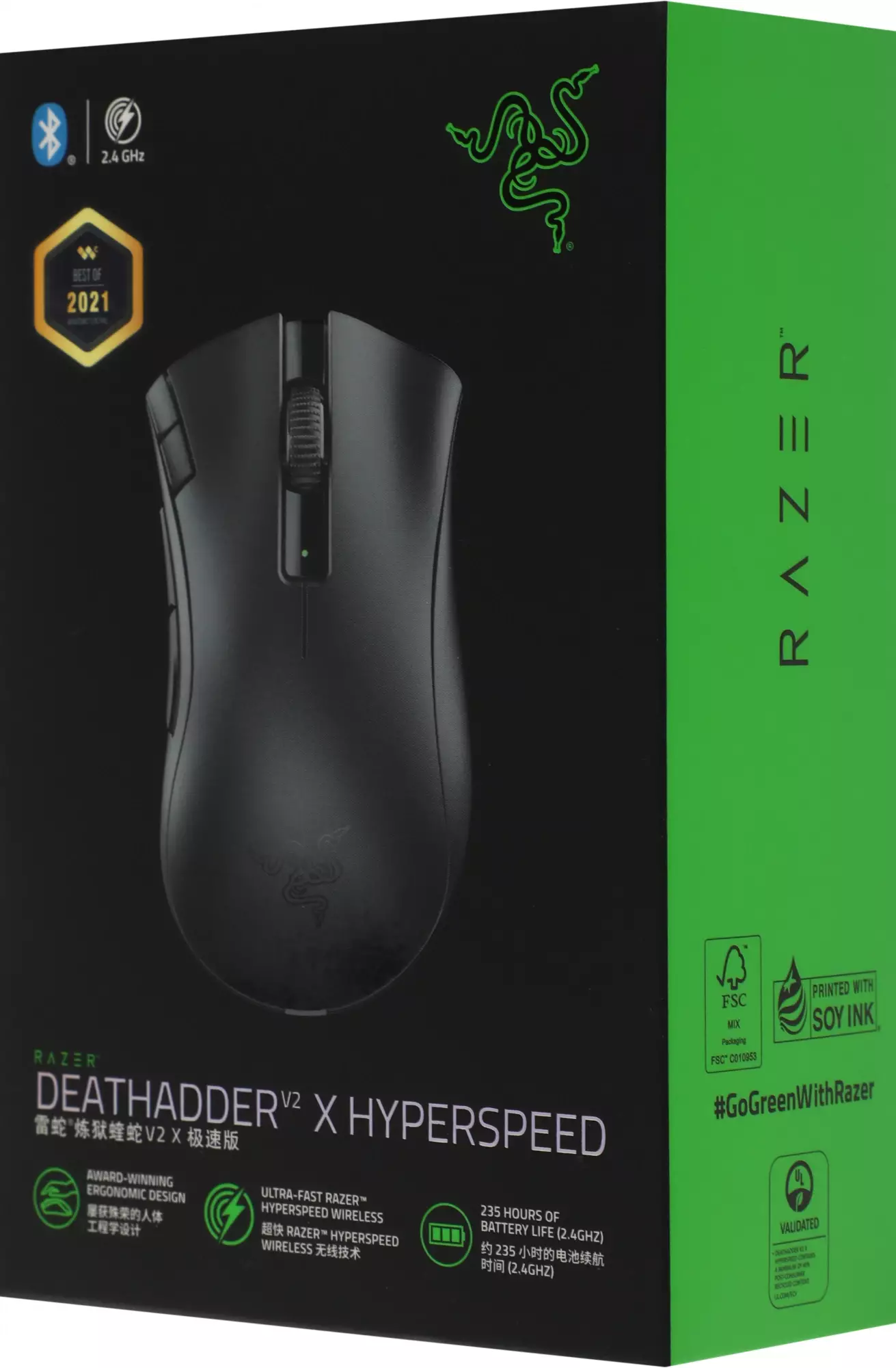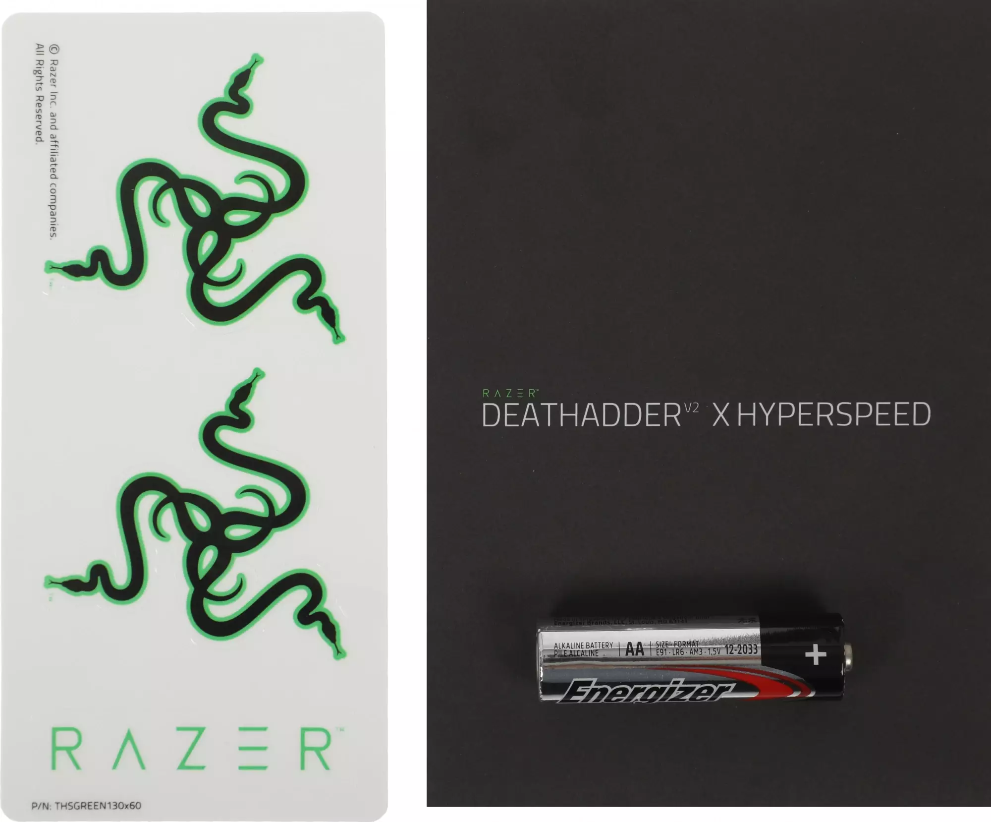 КомплектацияИгровая мышь Razer DeathAdder V2 HyperSpeed, USB беспроводной передатчик 2,4 ГГц, AA батарейка, Важная информация о продукте