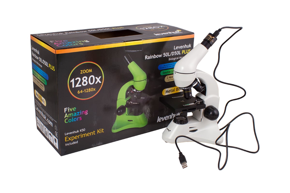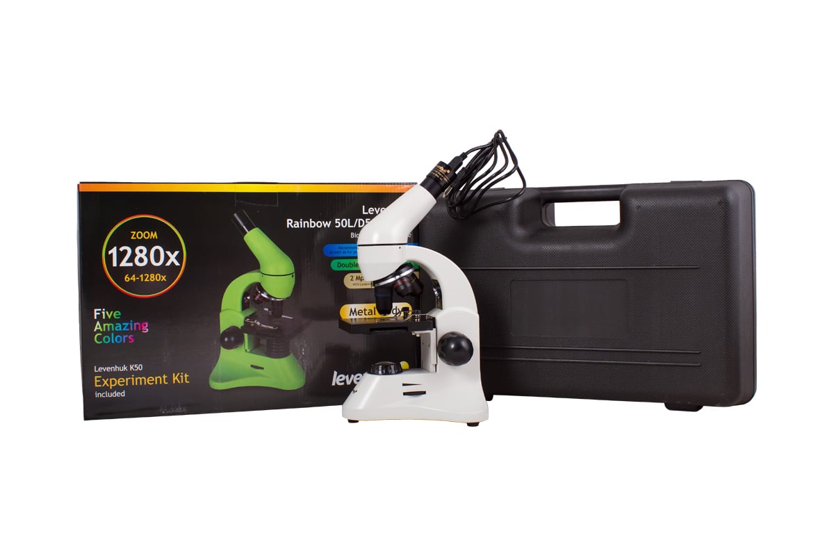 Levenhuk Rainbow D50L PLUS 69056 поставляется в пластиковом кейсе, удобно хранить и транспортировать;
