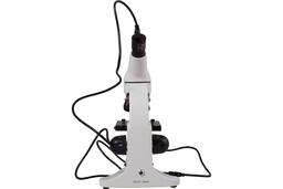 Светодиодная двусторонняя подсветка регулирует уровень освещенности и помогает в изучении как прозрачных, так и не прозрачных образцов. Питается не только от электрической сети, но и от батареек.
