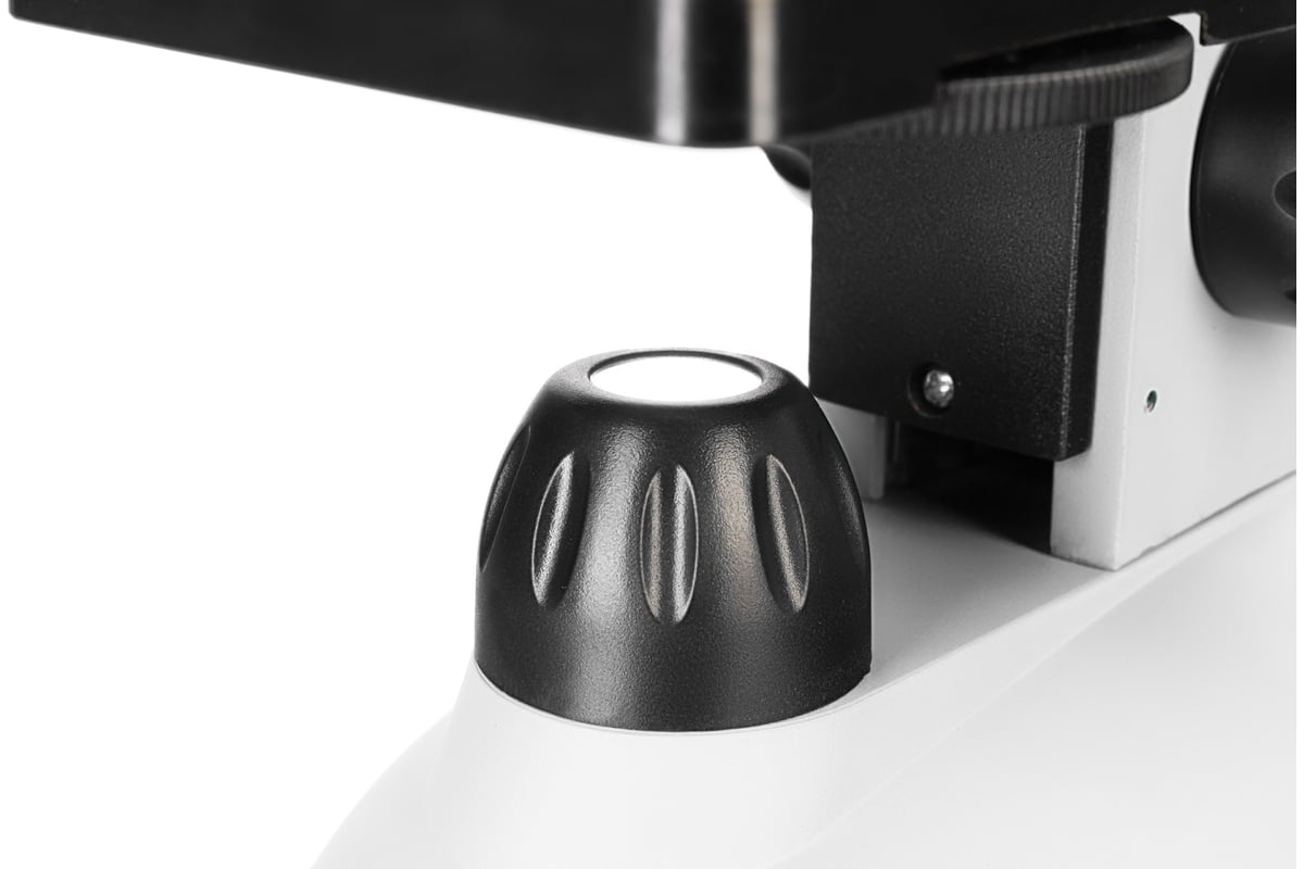 Для освещения образцов используется комбинированная светодиодная подсветка. Такое расположение подсветки позволяет работать как в проходящем, так и отраженном свете, т. е. изучать образцы любой степени прозрачности. Световой пучок от нижнего осветителя можно регулировать вращением диска с диафрагмами (под предметным столиком). Подсветка работает от батареек.