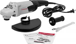 • Комплект поставки Машина шлифовальная угловая, руководство по эксплуатции и инструкция по безопасности, гарантийный талон, кожух защитный (для шлифовальных работ), дополнительная рукоятка, ключ специальный, гайка крепления шлифкруга, фланец опорный шлифкруга, упаковка.