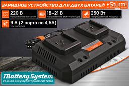 Зарядное устройство Sturm 18В, 1BatterySystem, 2x4.5А, для двух батарей SBC20M