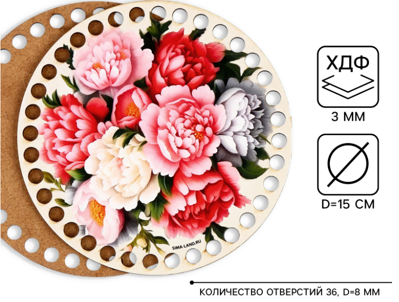 Набор заготовок для творчества Школа талантов Донышки для вязания. Пионы / 9918097