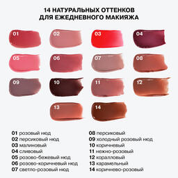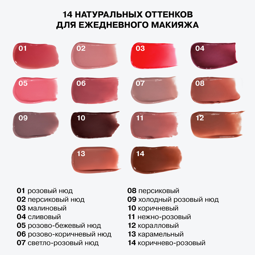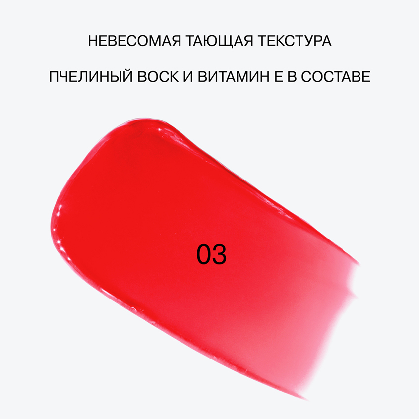 Универсальные полупрозрачные оттенки с сияющим финишем подходят для любого образа и настроения, а невесомая текстура позволяет добиться желаемого эффекта – от легкого полупрозрачного покрытия до более интенсивного и ослепительного.
