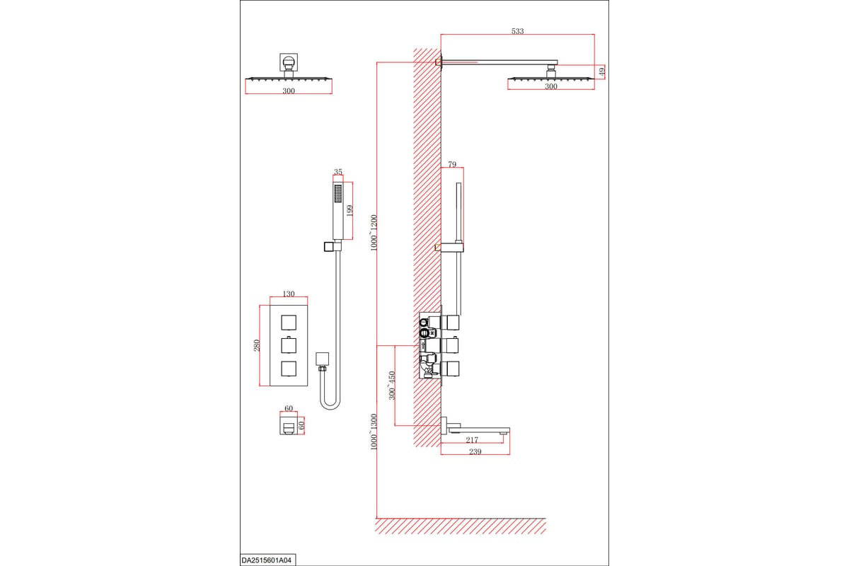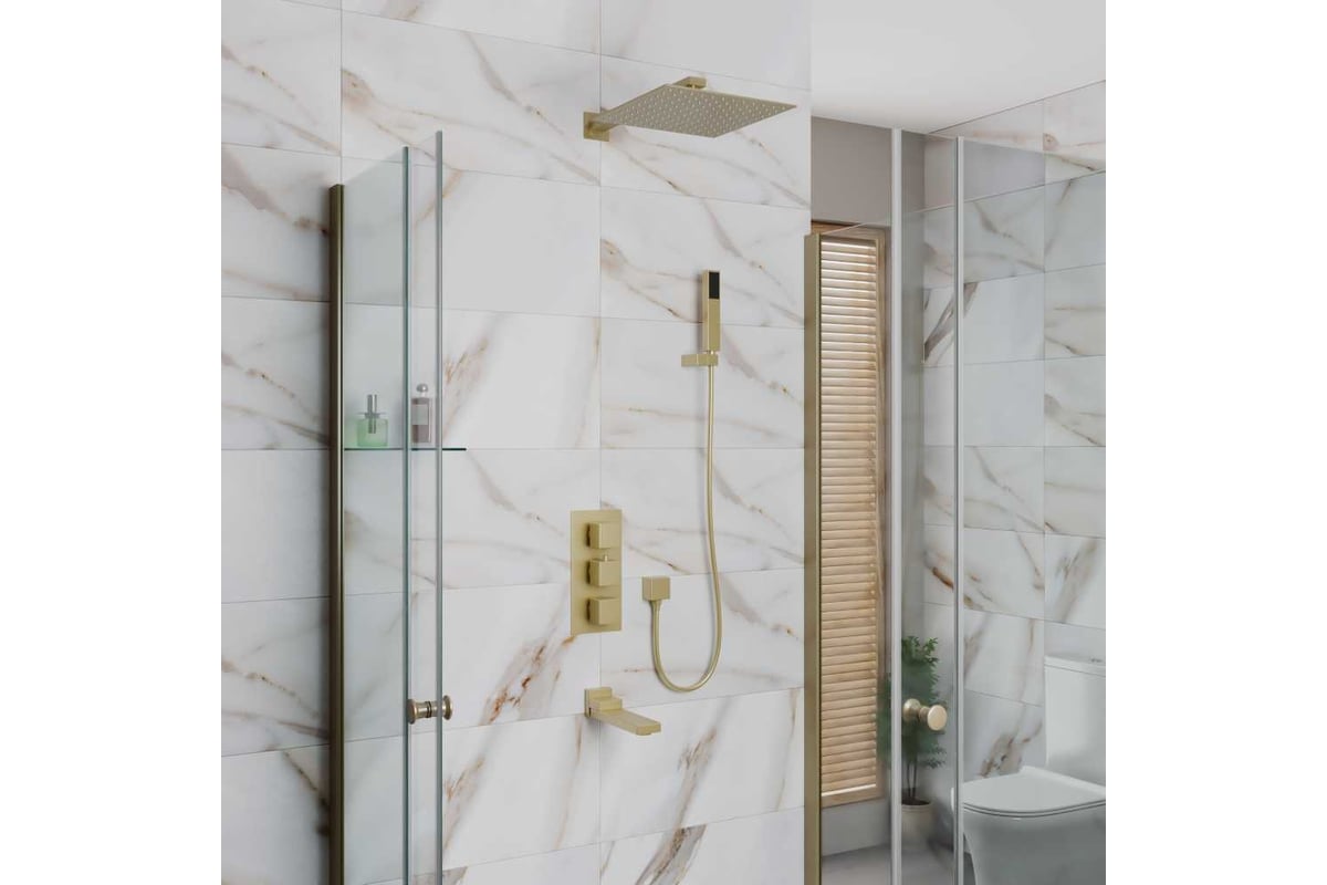 Встраиваемая термостатическая душевая система D&K Bayern.Liszt с изливом, матовое золото DA2515607A04