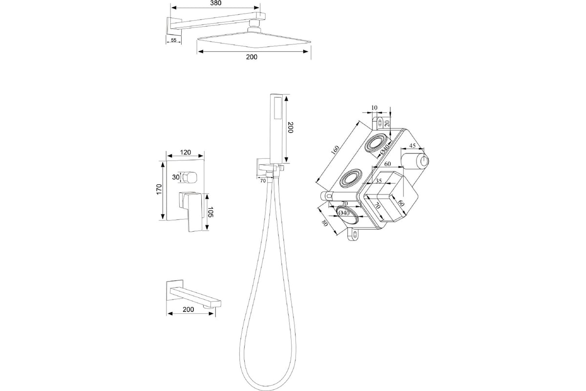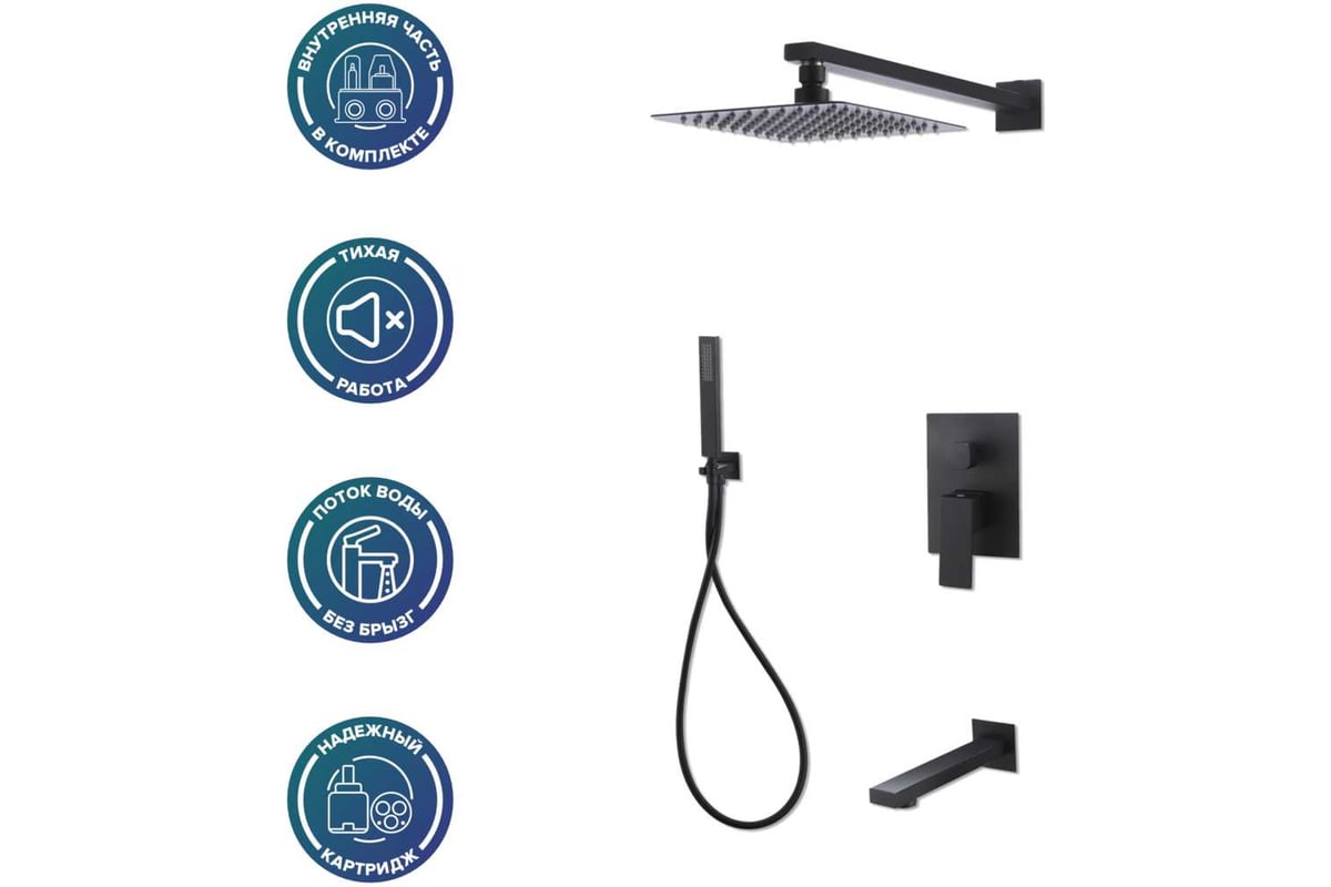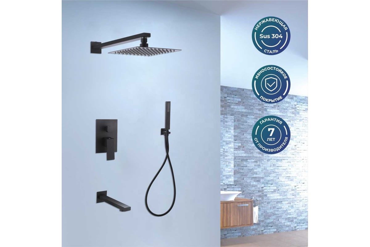 Душевой комплект, с встраиваемым смесителем с изливом, душевой и ручной лейкой, для ванны и душа выполнен из нержавеющей стали и прекрасно впишется в интерьер вашей ванной комнаты, лишние элементы скрыты в стене.