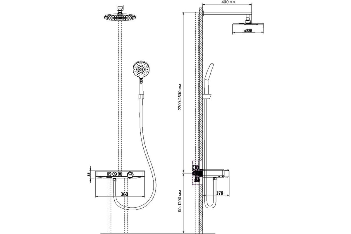 Верхний душ обеспечивает комфортное принятие SPA процедур, держатель верхнего душа имеет размер вылета из стены 40 см.