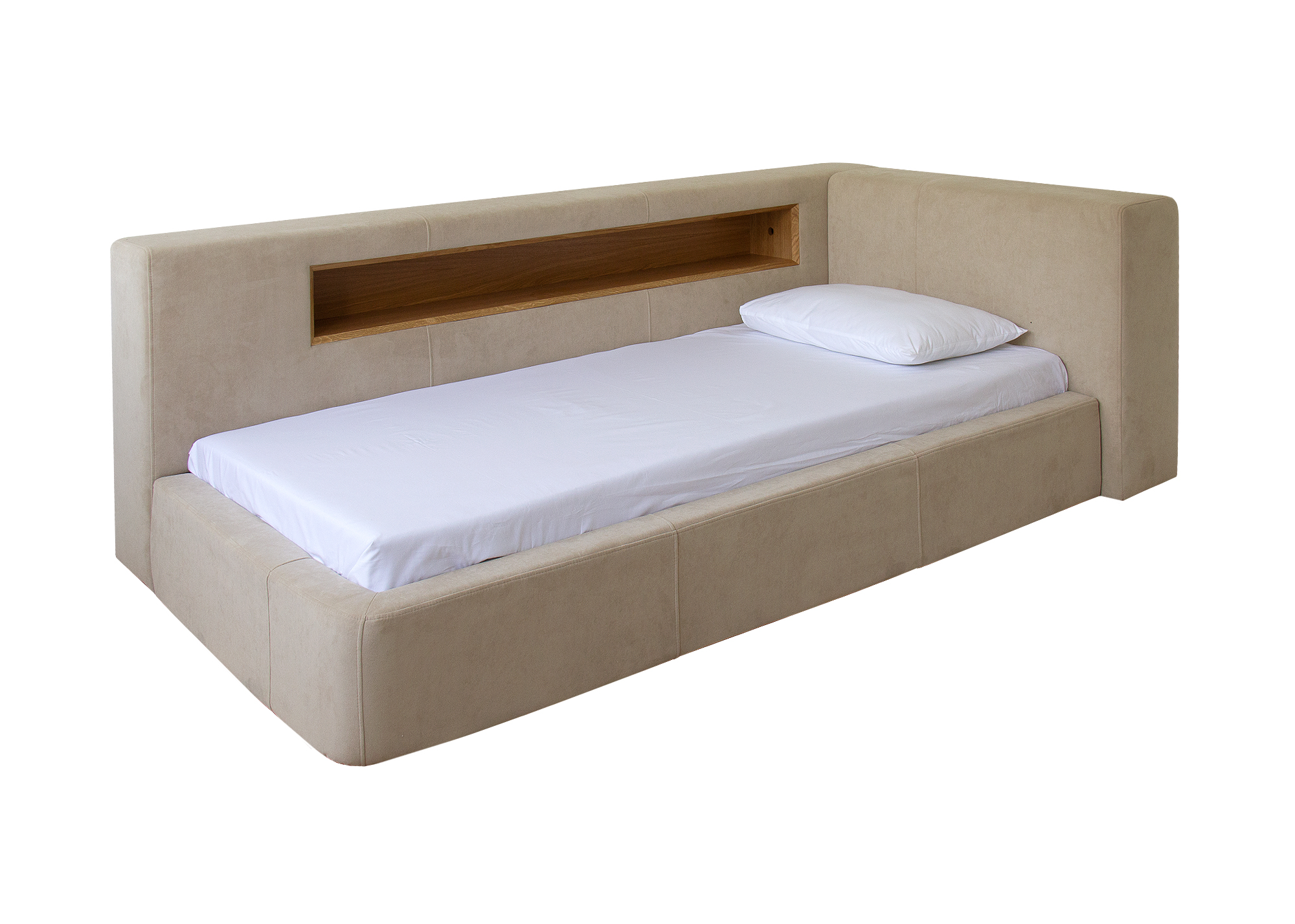 Кровать Cube c нишей L антивандальная ткань (бежевый)