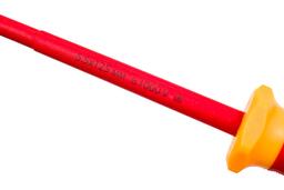 Диэлектрическая шлицевая отвертка SHTOK 1000В 5.5x125 мм 09202 используется для работ под напряжением. Отвертка оснащена рабочей частью из хром-ванадиевой стали. Предусмотрен магнитный наконечник, обеспечивающий удобство монтажа в расположенных вертикально приборах. Рукоятка удобной формы оснащена отверстием для подвешивания отвертки.