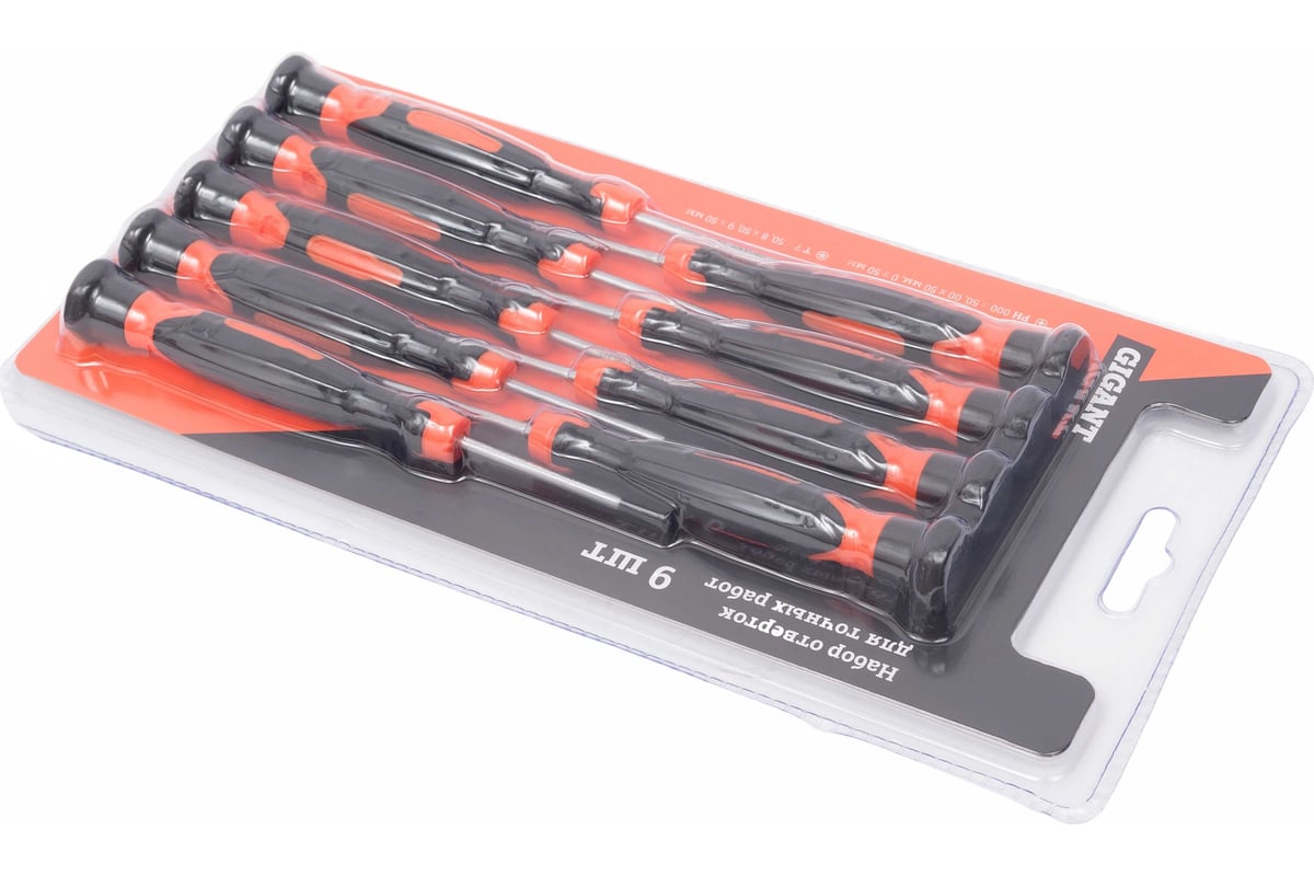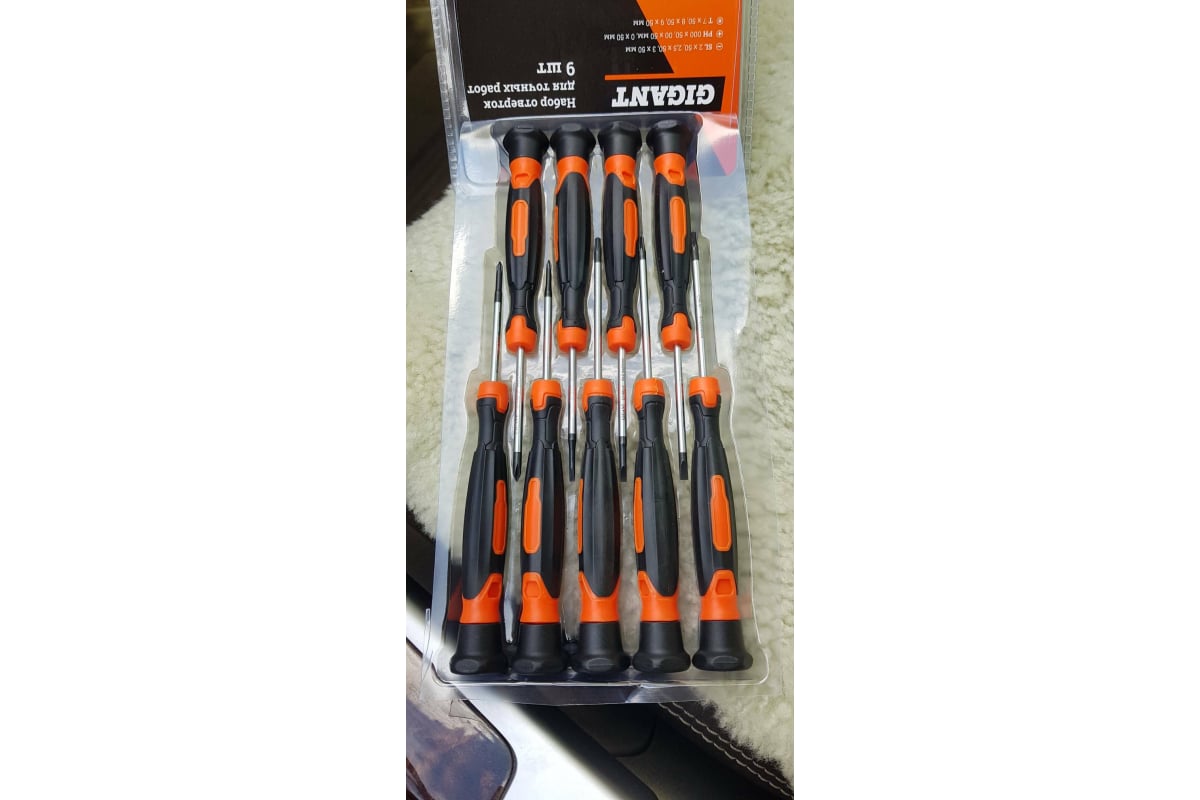 Набор отверток для точных работ 9 штук Gigant SHT310 - качественный набор инструмента, при помощи которого можно работать с крепежом в электронике, автомобиле, при ремонте сложного инструмента.