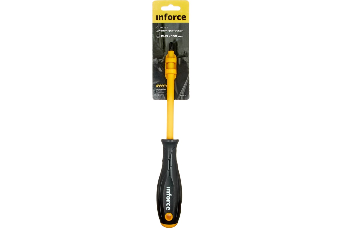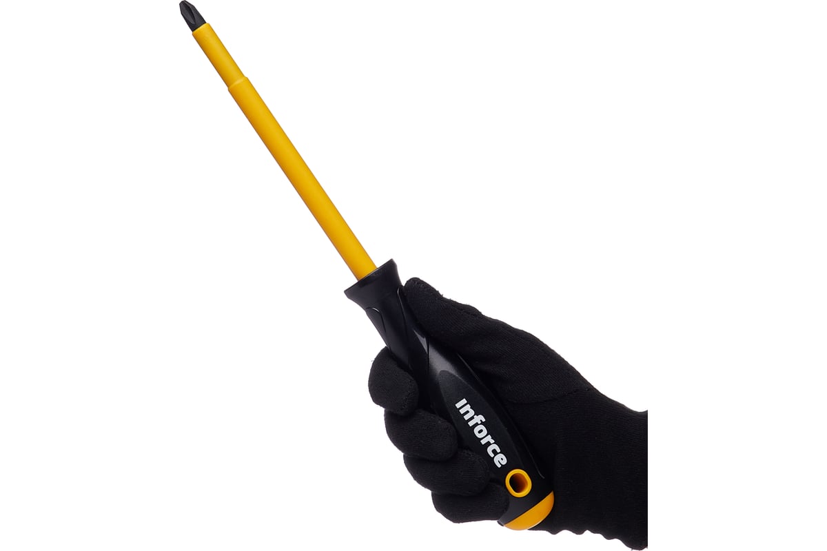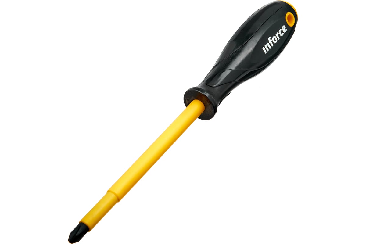 Диэлектрическая отвертка PH3х150мм Inforce 06-09-76 оборудована прочным и надежным стальным стержнем для сложных работ с крепежом.