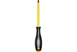 Рельефная рукоять прочно соединена со стержнем, что позволяет работать с большим усилием. Диэлектрическое покрытие делает безопасной работу в бытовых электросетях.