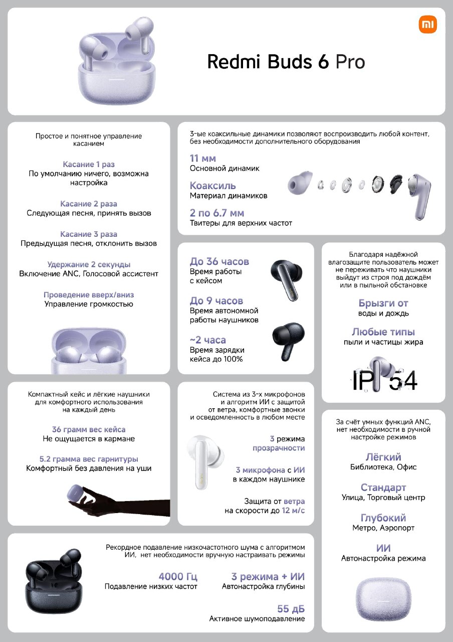 • Линейка Redmi Buds 6 Pro (Xiaomi)
