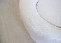 Комфортный мягкий пуф в тканевой обивке дополнит интерьер гостиной или спальни