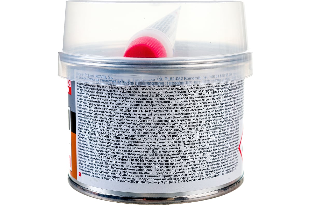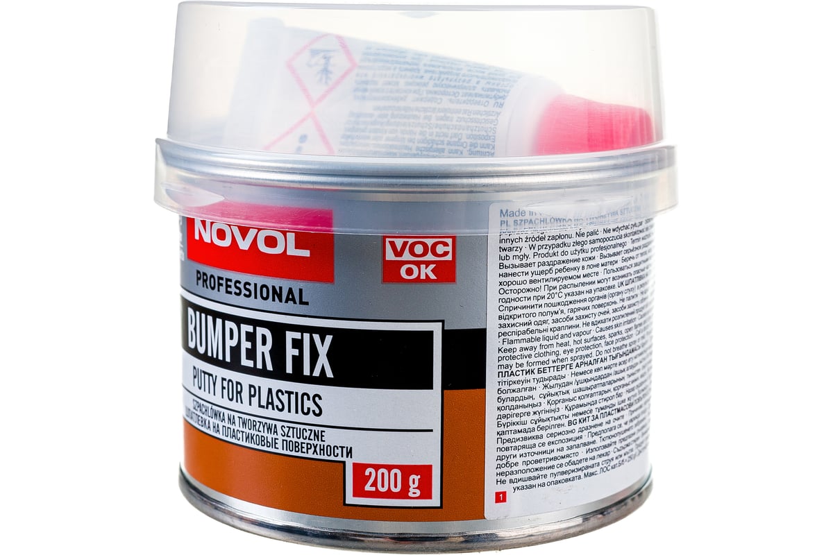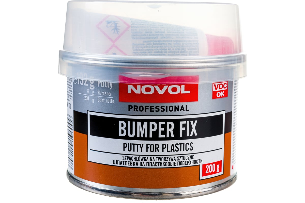 Шпатлевка Novol BUMPER FIX 0.2 кг 1170 предназначена для пластмасс. Обладает высокой эластичностью и отличной адгезией к большинству пластмассовых основ (за исключением полиэтилена и тефлона). Обладает удовлетворительной адгезией к полипропиленам, что позволяет шпатлевать не загрунтованные поверхности.