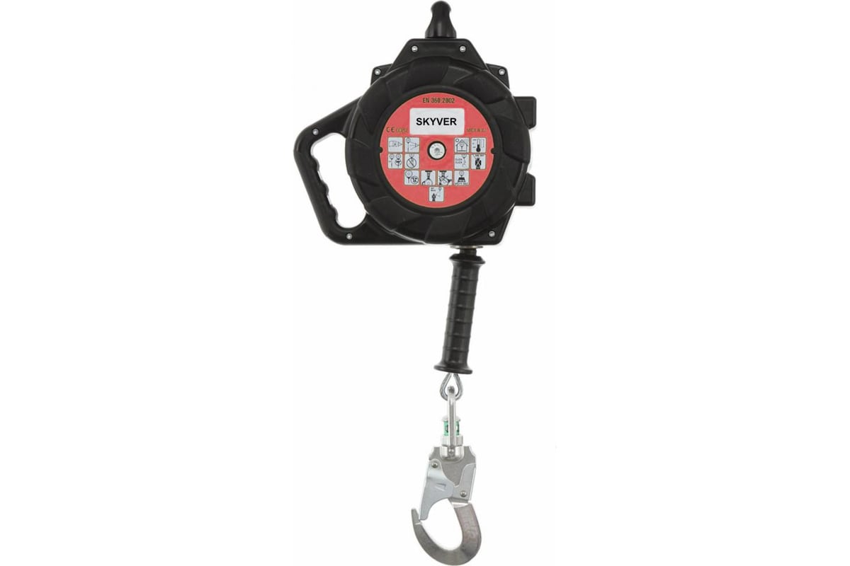 Блокирующее устройство с нержавеющим тросом SAFE-TEC SKYVER 15SS, трос 11 м GRS016SS 11 – это средство защиты втягивающего типа с функцией самоблокировки и автоматическим средством натяжения и возврата втягивающего троса.