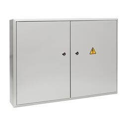 Электрощиты изготовлены из российской стали, соответствующей ГОСТ 1050-88. Сборка корпусов осуществляется методом сварки, что обеспечивает их высокую жесткость и герметичность соединения частей. Электрощиты оснащены съемной фальш-панелью. Электрощиты защищены от коррозии и разрушающего воздействия погодных факторов благодаря фосфатированию и использованию атмосферостойкой порошковой краски."