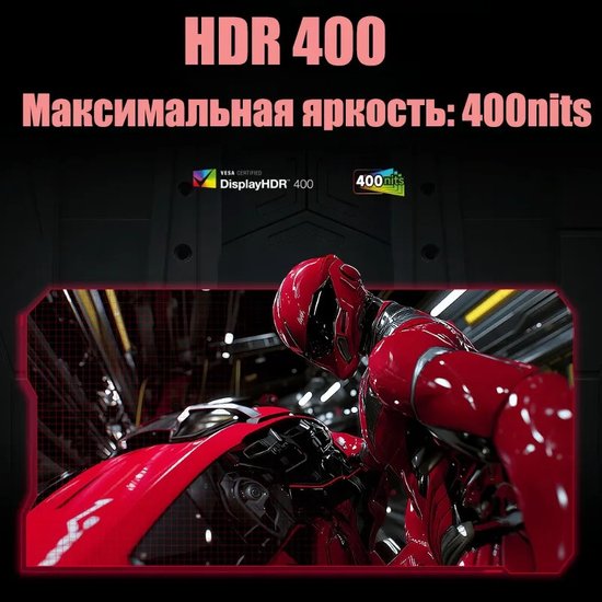 • Расширенный динамический диапазон (HDR) DisplayHDR 400