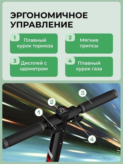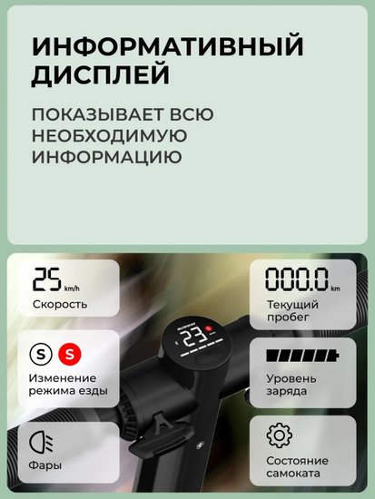 • Экран индикация скорости, индикация заряда аккумулятора, соединение Bluetooth