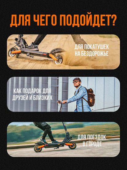 • Метки с сиденьем, с амортизацией, с большими колесами, большой запас хода, быстрый
