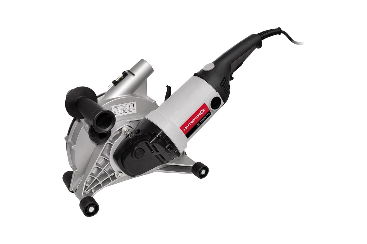 Штроборез Интерскол ПД-230/2600Э 364.1.0.00 служит для создания штроб (борозд) в поверхностях из камня, кирпича и бетона. Подходит для использования с двумя алмазными дисками, но также возможна работа с одним диском для резки твердых материалов в качестве угловой пилы. Благодаря наличию регулятора погружения и дистанционных шайб можно получить штробу нужной глубины и ширины. Для сохранения чистоты на рабочем месте штроборез оснащен эффективной системой пылеотвода, которая позволяет подключать к нему строительный пылесос.
