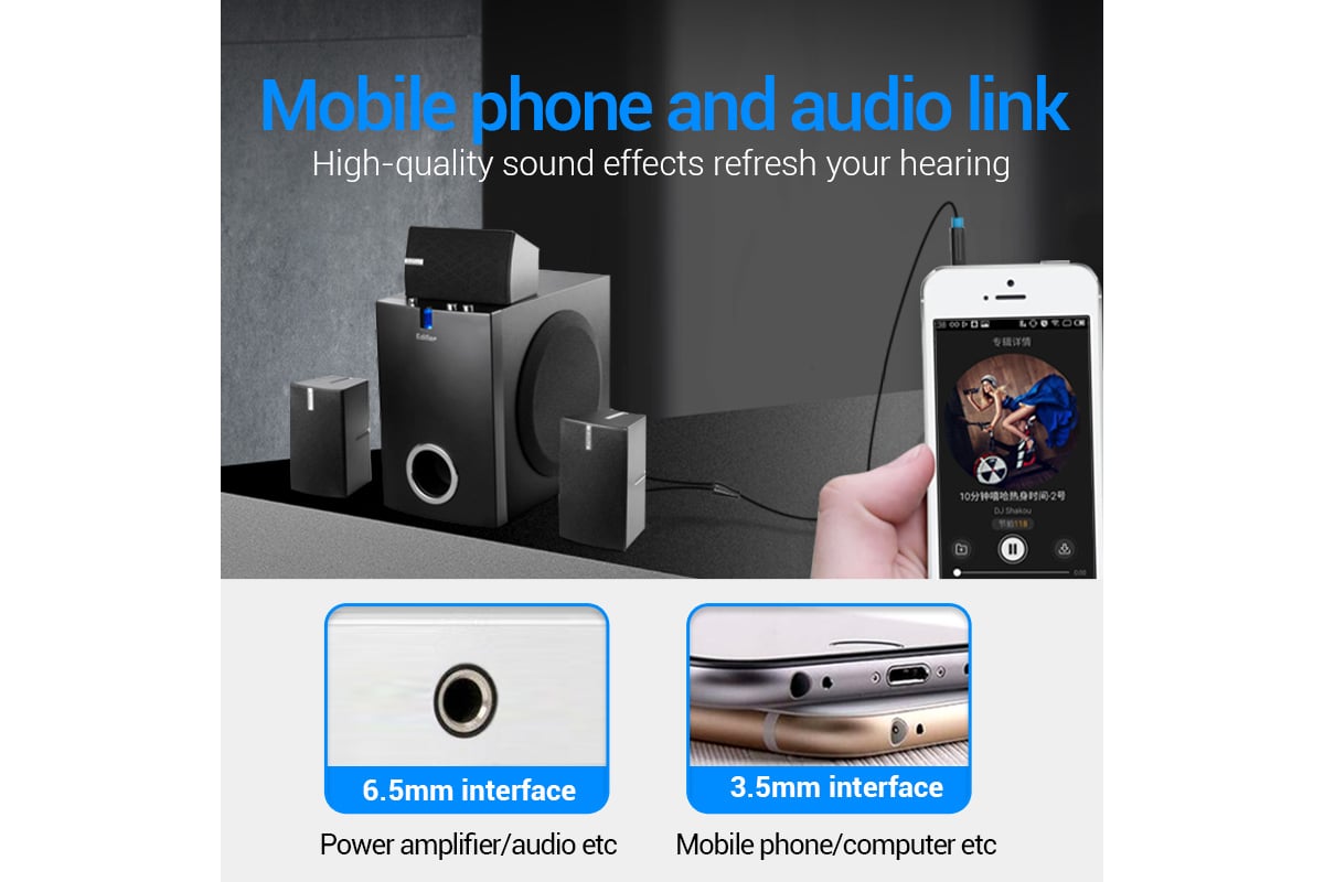 Кабель аудио VENTION Jack 3,5 mm M/2Jack 6,5 mm M - 1 м BACBF