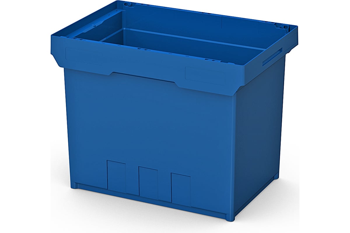 Вкладываемый полимерный контейнер с усиленным дном Пластик Система KVR 6442 12.354.65 отличается значительной грузоподъемностью и общей прочностью. Изделие используется для хранения продуктов питания, различных изделий. Пустые контейнеры можно вкладывать один в другой для компактного хранения.