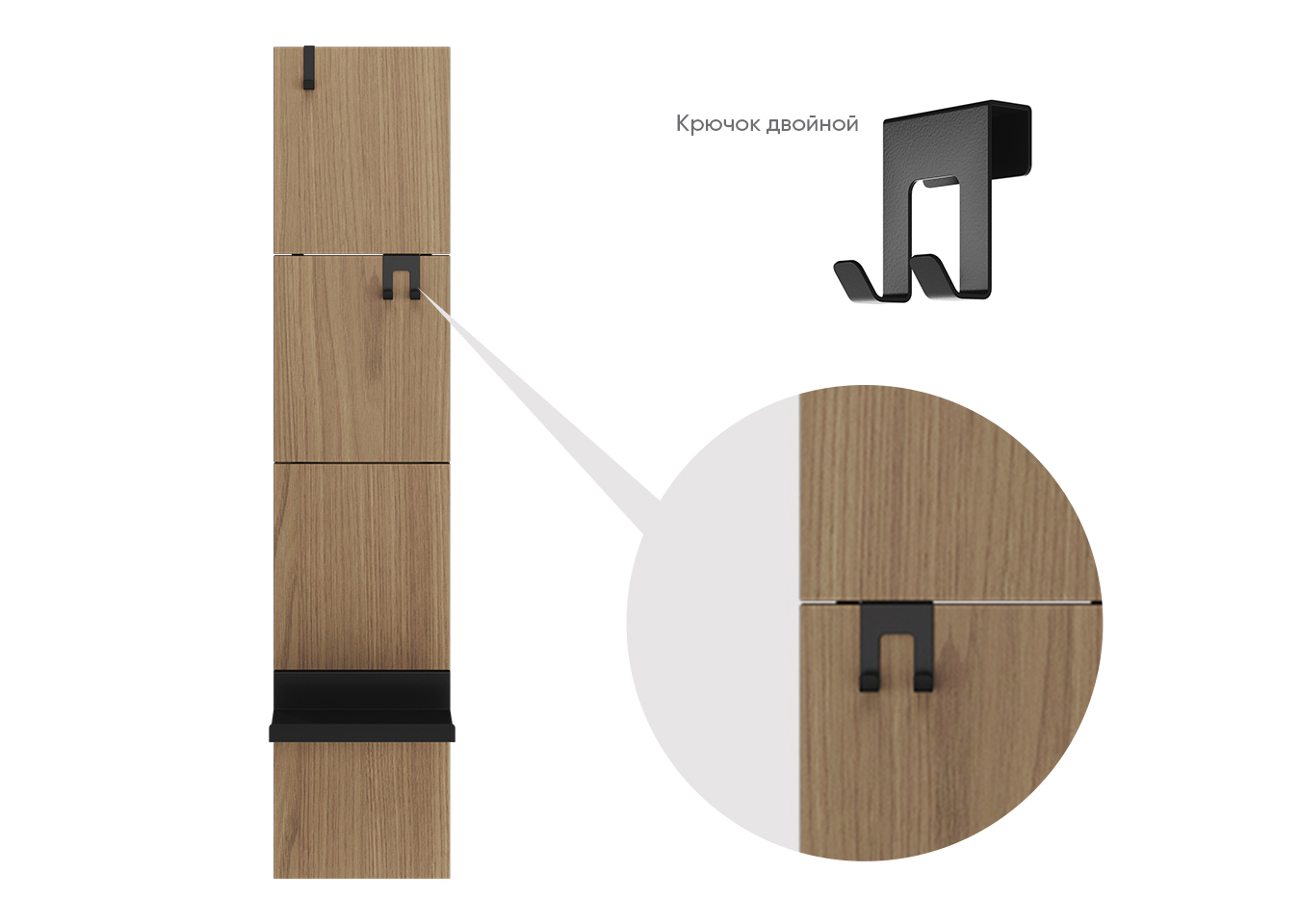 Крючок двойной для вешалки Stripe M и L из металла покрыт порошковой краской черного цвета
