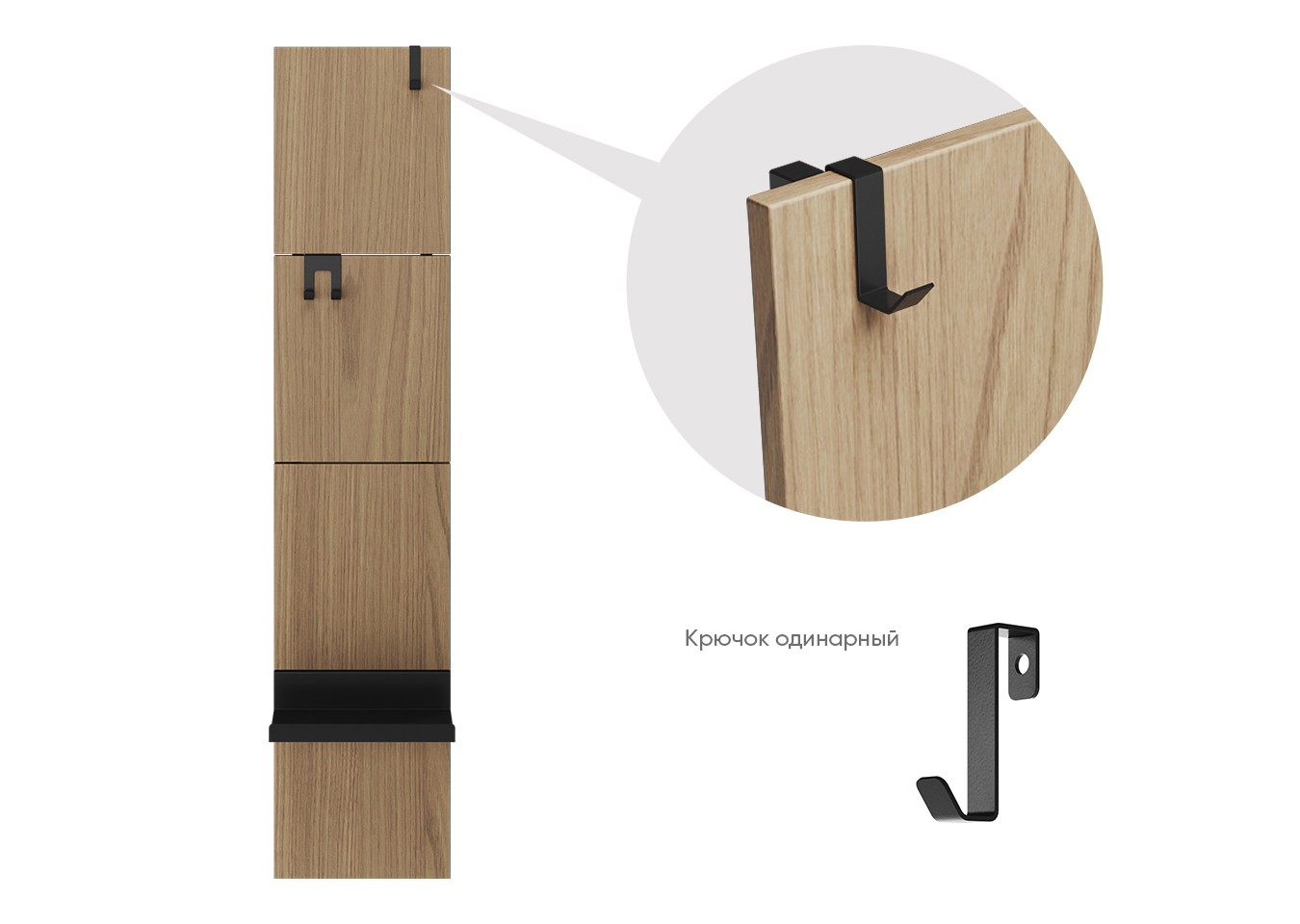 Крючок одинарный для вешалки Stripe M, L (черный)
