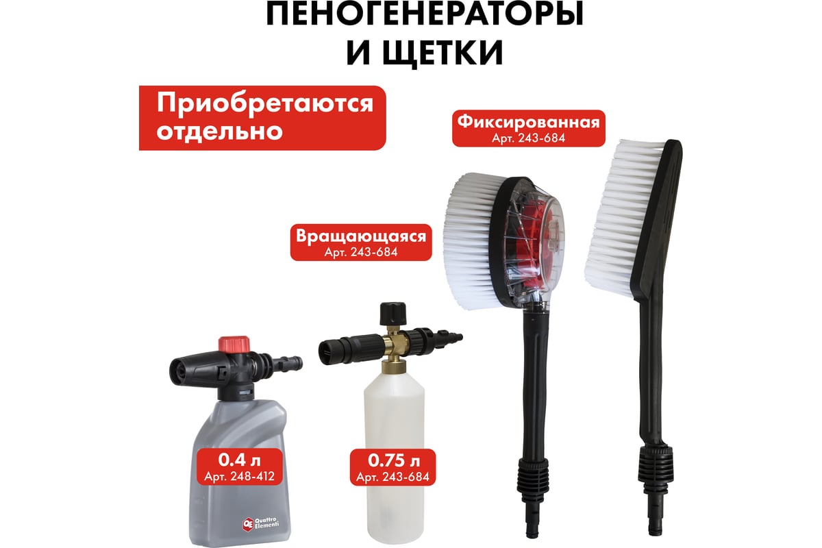Мойка высокого давления QUATTRO ELEMENTI NAPOLI 180 Turbo + роторная насадка 912-112