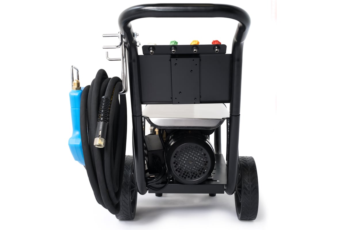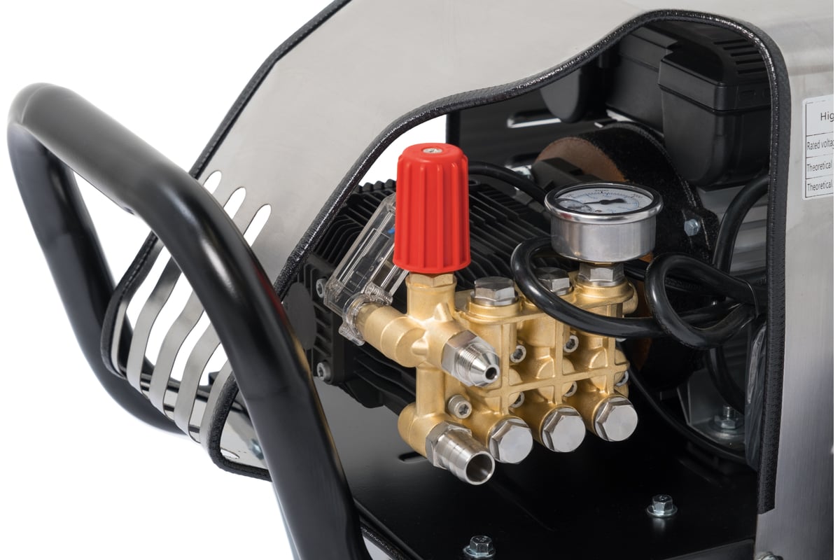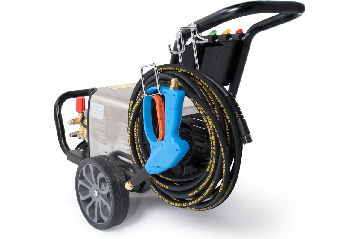 Аппарат высокого давления с оптимальными рабочими параметрами в сочетании с компактными размерами позволяет качественно и оперативно выполнять широкий спектр задач. Профессиональный насос высокого давления и электродвигатель с защитой от перегрузки повышают эффективность очистки и надежность эксплуатации.