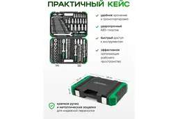 • Головки торцевые шестигранные, глубокие торцевые, торцевые Е-тип, головки со вставкой (30 шт.), свечные (3 шт.)