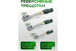 • Торцевые шестигранные головки 1/4″ (13 шт.), 3/8″ (10 шт.), 1/2″ (15 шт.)