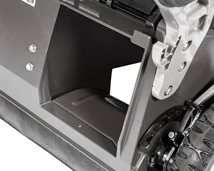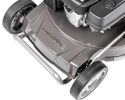 Корпус газонокосилки изготовлен без использования сварных швов из единого листа металла толщиной 1,8 мм. Это обеспечивает конструкции высокую прочность и долговечность.