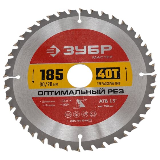 Диск пильный по дер. Зубр 36912-185-30-40_z01 d-185мм d(посад.)-20мм (циркулярные пилы)