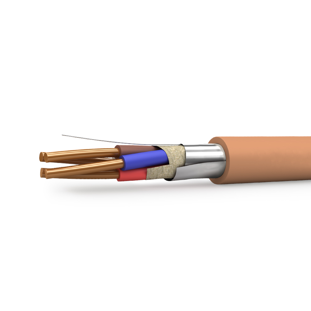 Кабели огнестойкие пожаробезопасные гибкие для систем пожарной сигнализации, не распространяющие горение при групповой прокладке, с изоляцией из кремнийорганической резины, дополнительным огнестойким барьером, экраном из алюмополимерной ленты и оболочкой из полимерной композиции, не содержащей галогенов, не выделяющей коррозионно-активных газообразных продуктов при горении и тлении.