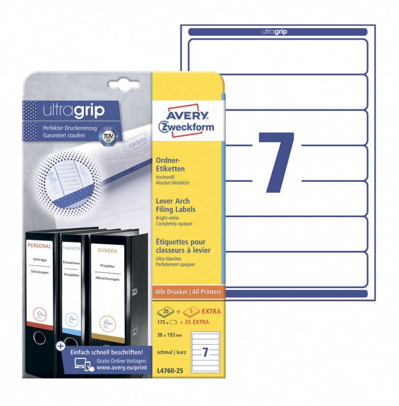 Этикетки Avery Zweckform L4760-25 A4, сегментов 7шт, 192x38, 80г/м2, 25л., белый