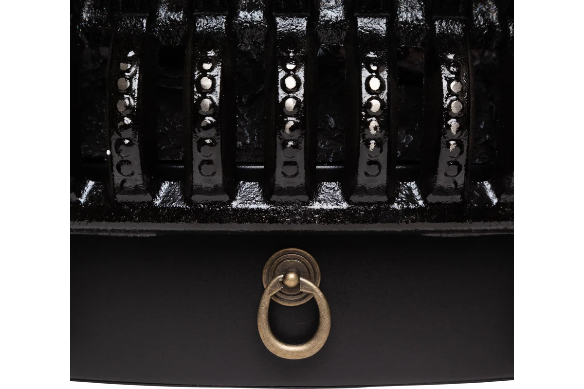 Оригинальность дизайна достигается литой чугунной решеткой, имитирующей колосник и внешней рамкой с небольшим капором.