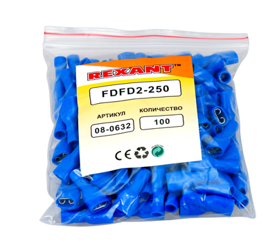 Клемма плоская полностью изолированная (КППИ гн - 6.6 мм) REXANT предназначена для создания качественного подключения электрооборудования или соединения проводов между собой, которое при необходимости, возможно разъединить без лишних усилий. Такая клемма используется для оконцовывания многожильных медных проводов при монтаже мобильных электрических контактных соединений на подвижном составе (автомобиле-, вагоно-, самолето- и судостроении) или в других местах, где важна надежность соединения (к примеру, телефонное или климатическое оборудование). Полностью изолированная плоская клемма REXANT состоит из двух компонентов: металлического коннектора (гнездо) и защитного изолятора, полностью закрывающий штекер. Металлический коннектор изготовлен из латуни, с поверхностным электролитическим лужением, а изолятор клеммы из поливинилхлорида (ПВХ), который надежно защищает место обжима кабеля и контактную часть. Цвет изолятора синий. Обжатие производится специальными пресс-клещами (ht-301) поверх защитного изолятора. Каждая клемма имеет фиксатор замкового типа для более прочного механического соединения с штекерным разъемом.Основные характеристики:Температурный диапазон: -10...+75 ℃Сечение применяемых проводов в диапазоне: 1.5-2.5 мм²Рабочая ширина штекера: B = 6.6 ммМаксимально допустимая величина пропускаемого тока: 15 АПрименение КППИ дает возможность существенно ускорять электромонтажные работы, при этом появляется возможность многократного отсоединения и присоединения проводов.