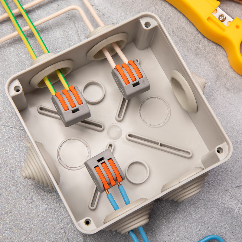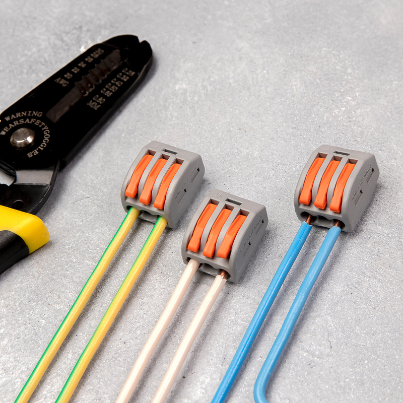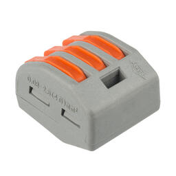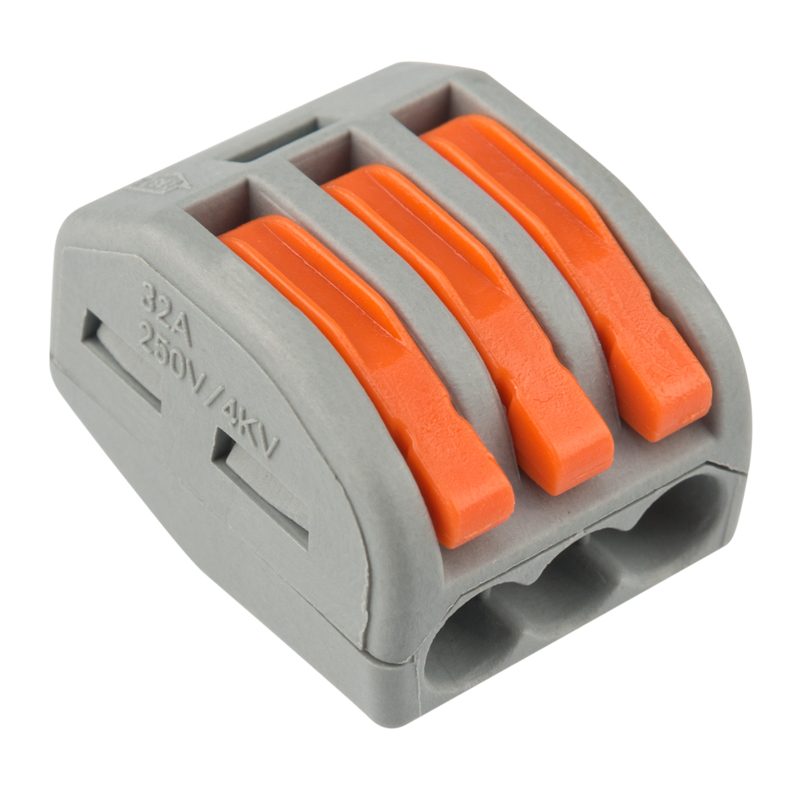 Соединительная многоразовая клемма REXANT на 3 проводника с плоско-пружинным зажимом предназначена для подсоединения медных одножильных и многожильных зачищенных проводников тонкого сечения. Перед монтажом с соединяемых проводников необходимо снять изоляцию в соответствии с обозначениями на корпусе клеммы (9-12 мм). Зачищенный участок с монтажной стороны не должен иметь сильных изгибов. Вставьте его в свободное гнездо клеммы, предварительно подняв оранжевый рычажок, после этого опустите рычажок в исходное положение. Контакт осуществляется путем зажима проводника пластиной. Конструкция предотвращает случайное размыкание контакта. Специальное технологическое отверстие на корпусе клеммы предназначено для проверки соединения тестером-пробником или щупом мультиметра. Корпус из пластика делает контакт изолированным.Извлечение проводника (демонтаж) осуществляется действиями в обратном порядке.Характеристики:Размер: 17x14.5x20.5 ммМатериал: ПолиамидКоличество контактов: 3Материал контактов: луженая медьЗажим: стальЦвет: серыйНапряжение: 400 ВМатериал подключаемых проводов: CuТипы подключаемых проводов: одножильные, многожильныеТок: для одножильных проводов — 32 А, для многожильных проводов — 24 А\28-12 AWGПоддерживаемое сечение: 3x0.08-4 мм² (одножильный провод), 3x0.08-2.5 мм² (многожильный провод)Рабочая температура: –40...+85 ºC