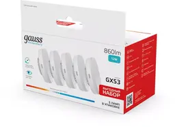 Лампа светодиодная Gauss Elementary, 12Вт, цоколь GX53, белый холодный, 4100К (5шт) (84822V)