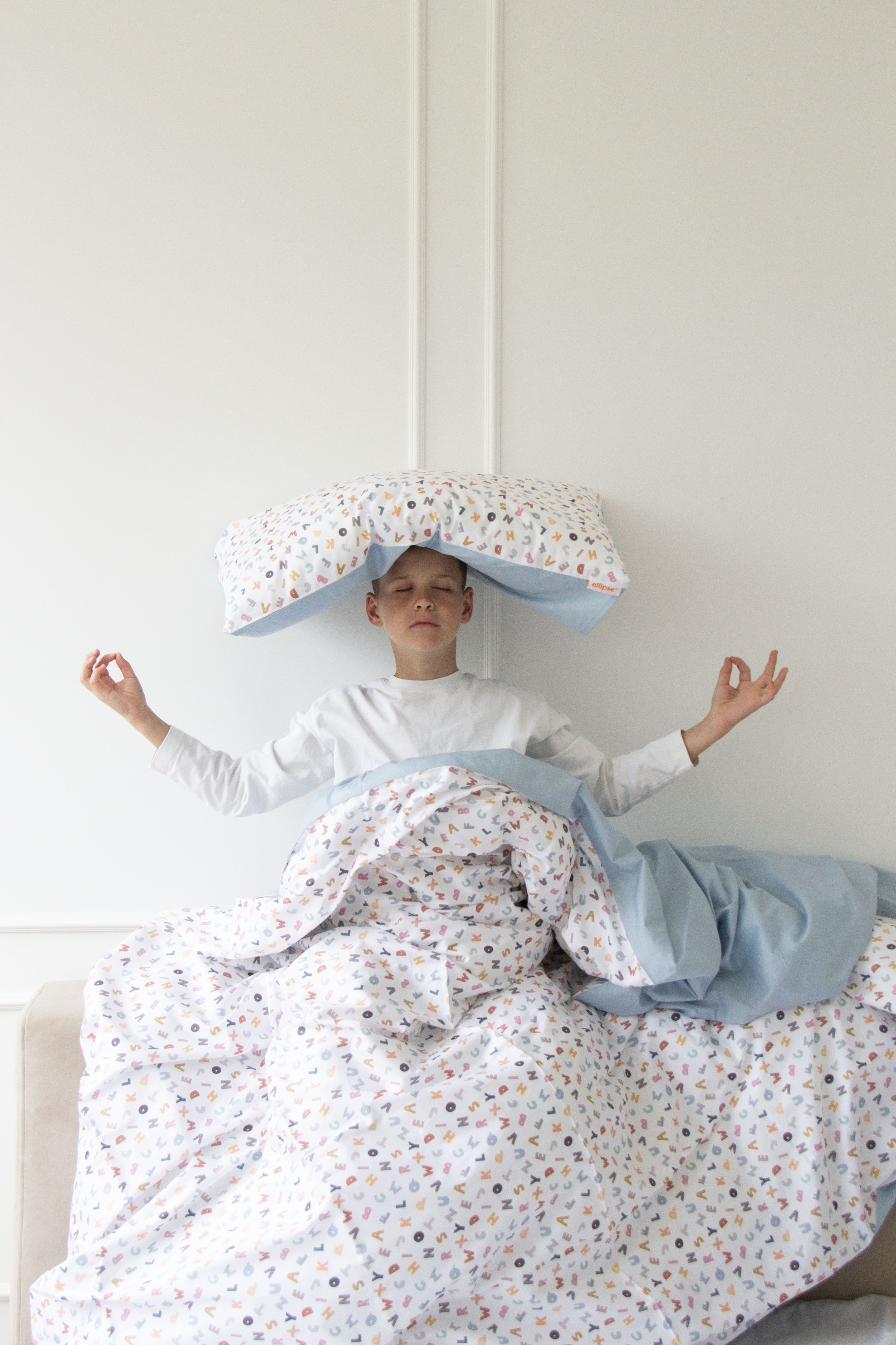Комплект постельного белья «Разноцветные буквы» (голубой, сатин)