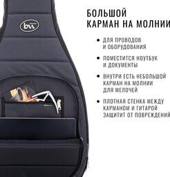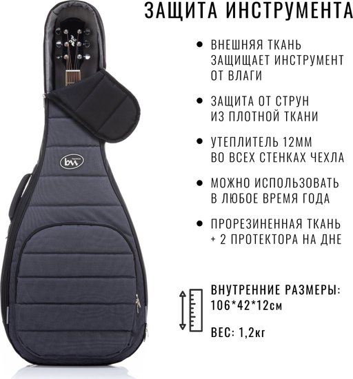 ✅ Чехол на гитару акустическую зимний универсальный с увеличенным передним карманом. ✅ Подходит для распространенных акустических гитар (в том числе Drednought (Дредноут), Grand auditorium (Гранд аудиториум), Jumbo (Джамбо, кроме Super). ✅ Большой внешний карман на молнии вместит необходимые музыкальные аксессуары, медиатор, ключ.✅ Внутренние размеры: 106х42х12 см.✅ Чехол на гитару акустическую зимний универсальный с увеличенным передним карманом. ✅ Подходит для распространенных акустических гитар (в том числе Drednought (Дредноут), Grand auditorium (Гранд аудиториум), Jumbo (Джамбо, кроме Super). ✅ Большой внешний карман на молнии вместит необходимые музыкальные аксессуары, медиатор, ключ.✅ Внутренние размеры: 106х42х12 см.