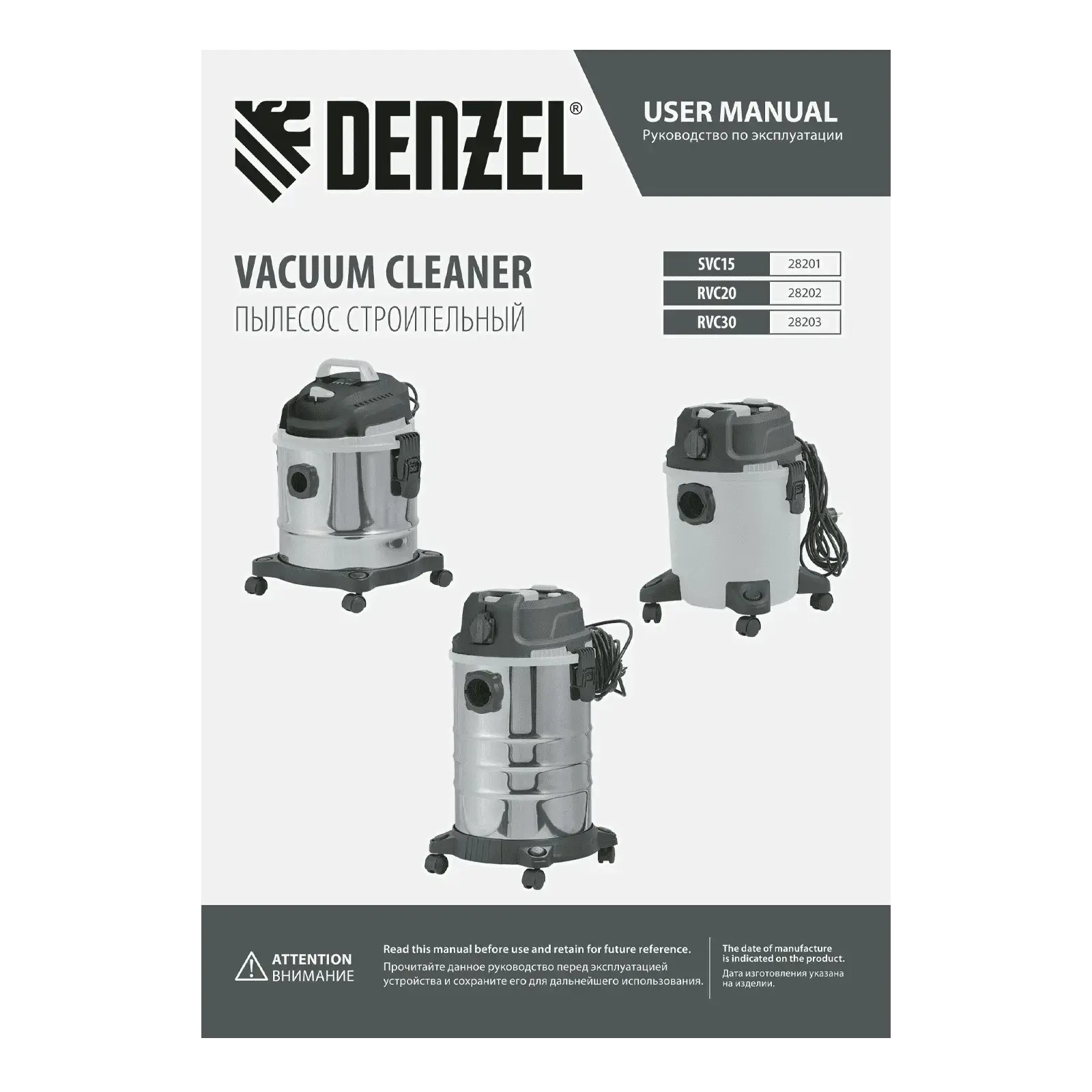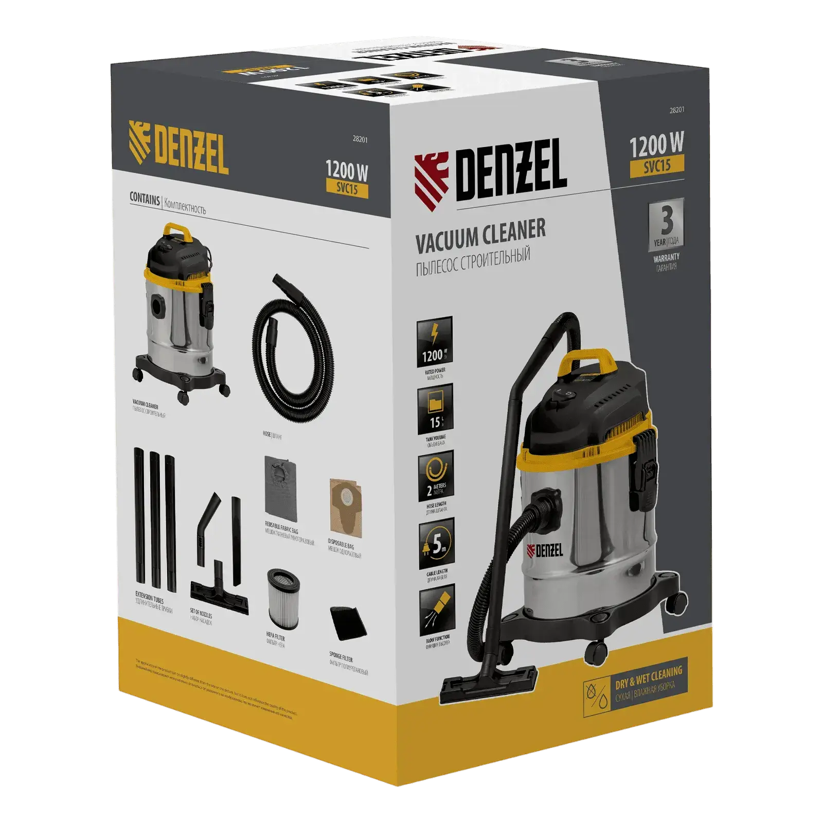 Профессиональный пылесос Denzel Строительный SVC15 / 28201