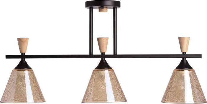 - Металлическое основание потолочной люстры окрашено в черный цвет. Стеклянные плафоны отлиты в фактурную форму и гальванизированы в цвет коньяка. Потолочная люстра декорирована элементами из светлого натурального дерева. Площадь освещения: 9 м²._x000D_ Металлическое основание потолочной люстры окрашено в черный цвет. Стеклянные плафоны отлиты в фактурную форму и гальванизированы в цвет коньяка. Потолочная люстра декорирована элементами из светлого натурального дерева. Площадь освещения: 9 м²._x000D_